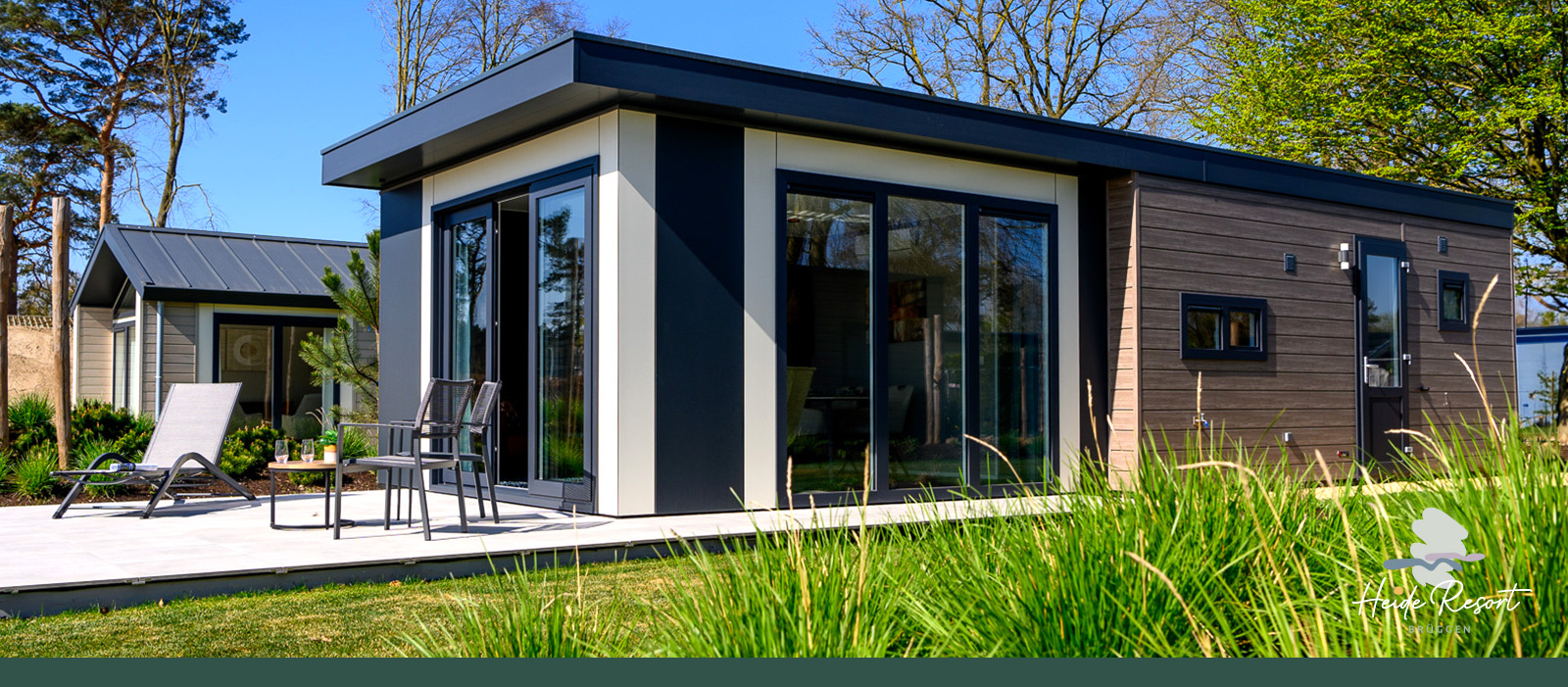 Ferienhaus direkt am Wasser mit eigener Terrasse. Für bis zu 6 Personen. Drei Schlafzimmer: Eins mit Doppelbett und eines mit zwei Einzelbetten. Ein weiteres mit zwei Schlafplätzen im Etagenbett. Die durchdachte Raumaufteilung schafft Flexibilität für Familien oder kleine Freundesgruppen. Modern gestaltet, hell geschnitten.