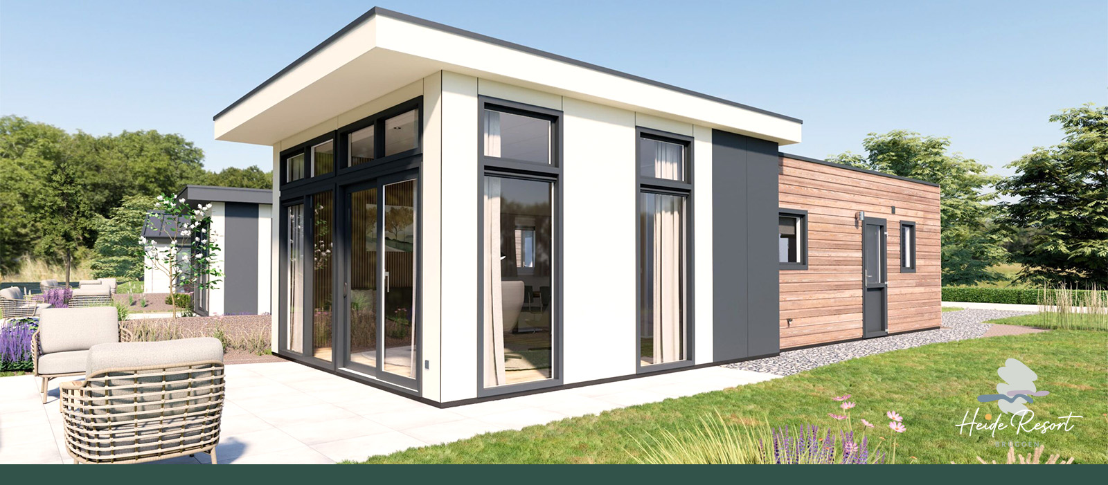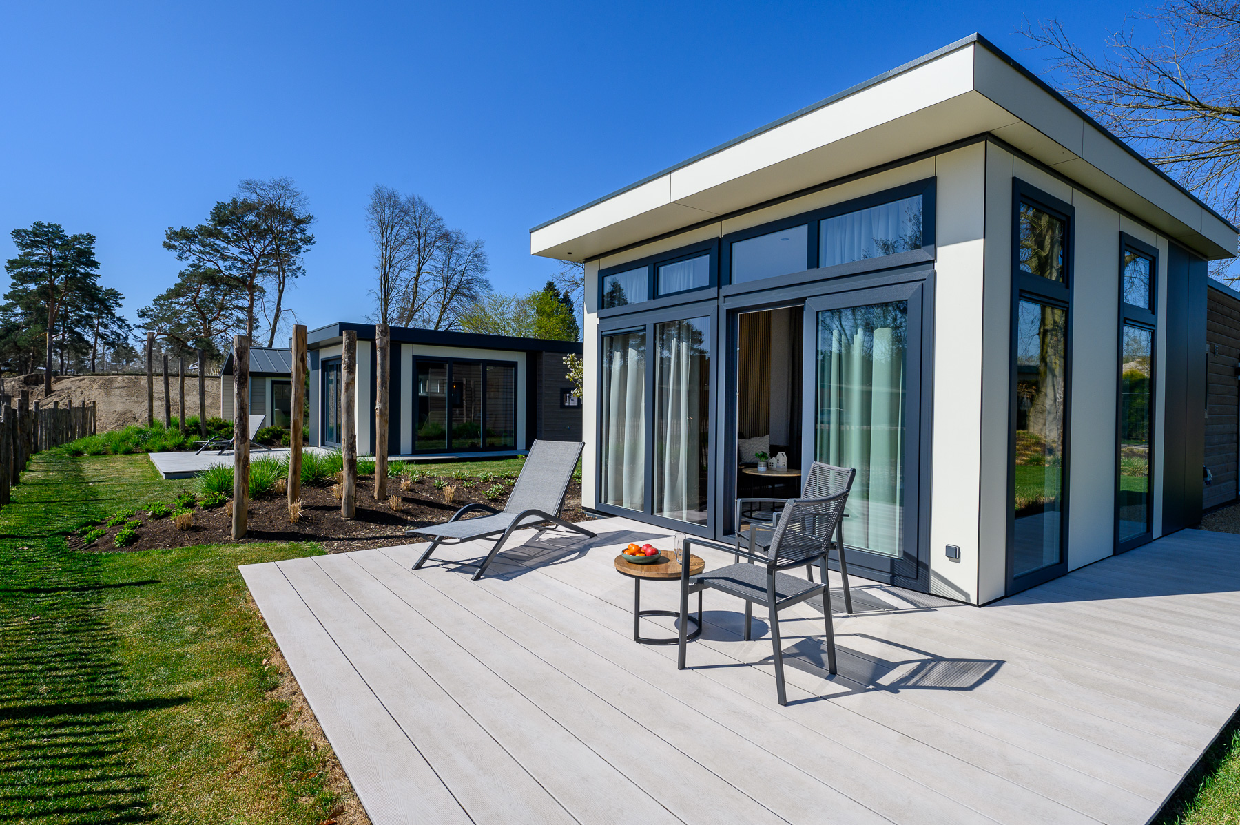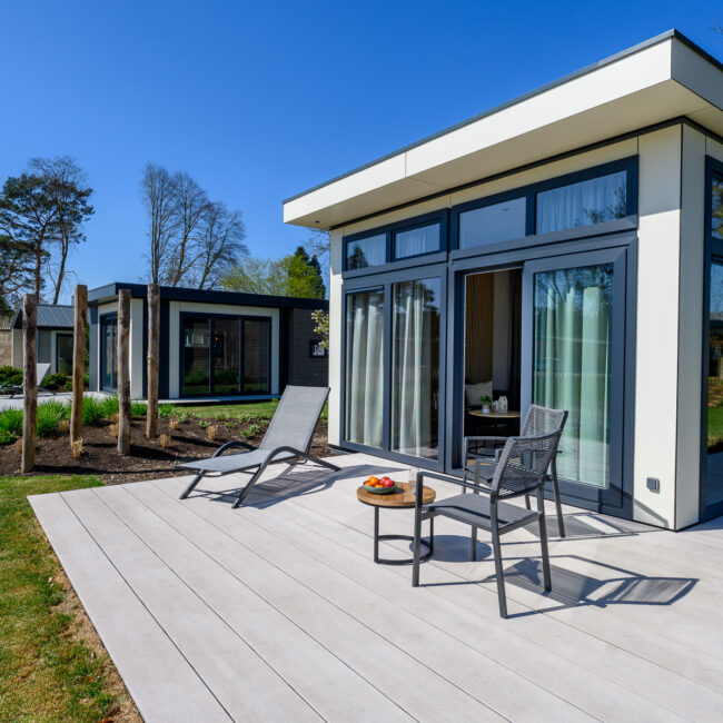Das Ferienhaus New Port bietet große Fensterfronten, ein versetztes Flachdach und einen modernen Baukörper mit hohen Decken machen Newport zum architektonischen Highlight. Innen warten zwei stilvoll eingerichtete Schlafzimmer mit Doppelbett und zwei Einzelbetten.